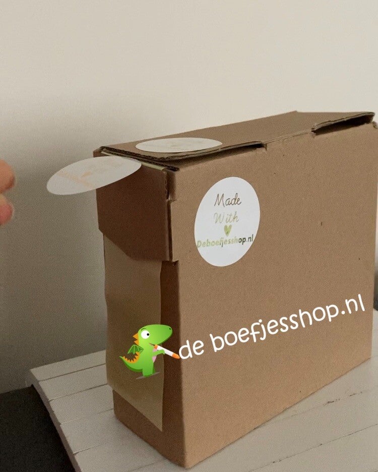 Berg de stickers netjes en overzichtelijk op in ons stevige sticker dispenser doosje.